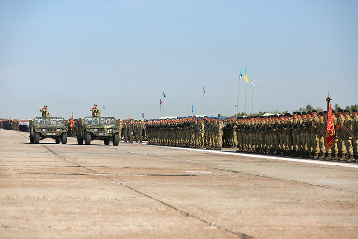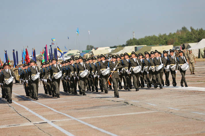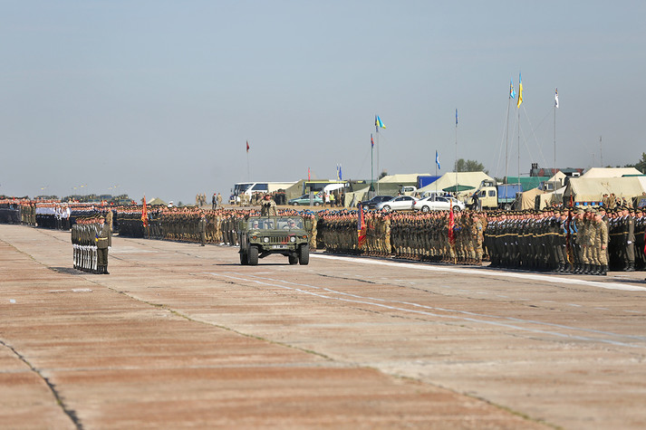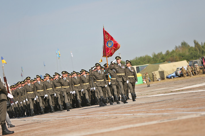 На злітно-посадковій смузі аеродрому Київського державного авіаційного заводу «Авіант» відбулася репетиція військових парадних розрахунків, які візьмуть участь у параді до Дня Незалежності