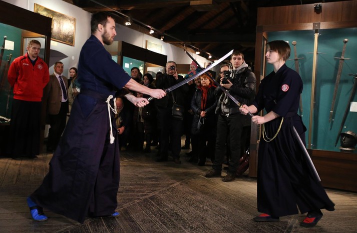 Виставка надає можливість провести паралелі між такими несхожими, на перший погляд, соціокультурними явищами та військовими традиціями, як козацтво і самурайство. Але саме несподіване порівняння допомагає пізнати й гідно оцінити власну культурно-історичну спадщину, побачити її в контексті світової історії. На відкритті експозиції свою майстерність володіння самурайським мечами продемонстрували майстри східних єдиноборств Львова.
