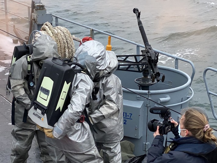 Крім того, на борту «Юрій Олефіренко» було відпрацьовано тренування з надання допомоги аварійному кораблю із висадкою аварійно-рятувальної групи французького фрегата.
