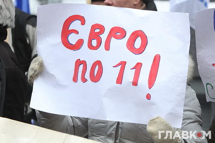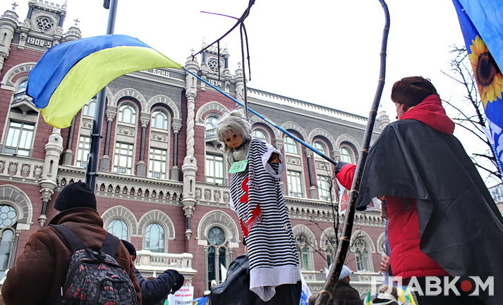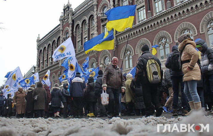 16 листопада під будівлю Національного банку України повернулися мітингувальники, які окрім відставки голови НБУ вимагають повернути курс до дореволюційного рівня – «8 гривень за долар».