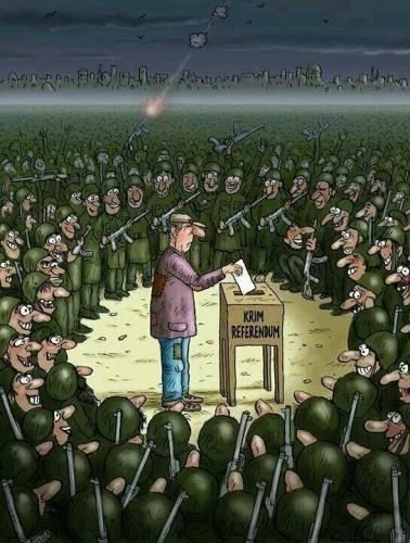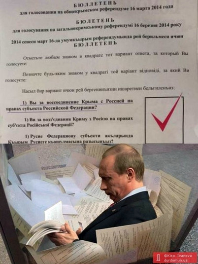 Голосування під дулами автоматів. Фотожаби до третьої річниці «кримського референдуму»