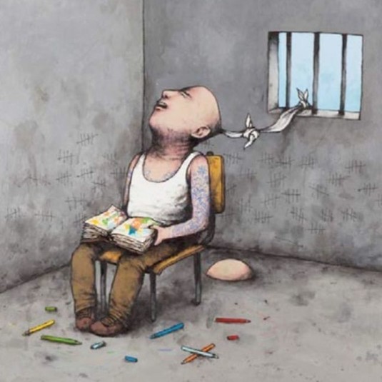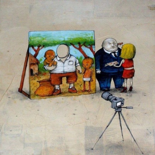 Вуличний художник Дран з Франції отримав прізвисько «французький Бенксі» через те, що він своїми роботами привертає увагу до гострих соціальних та політичних проблем.