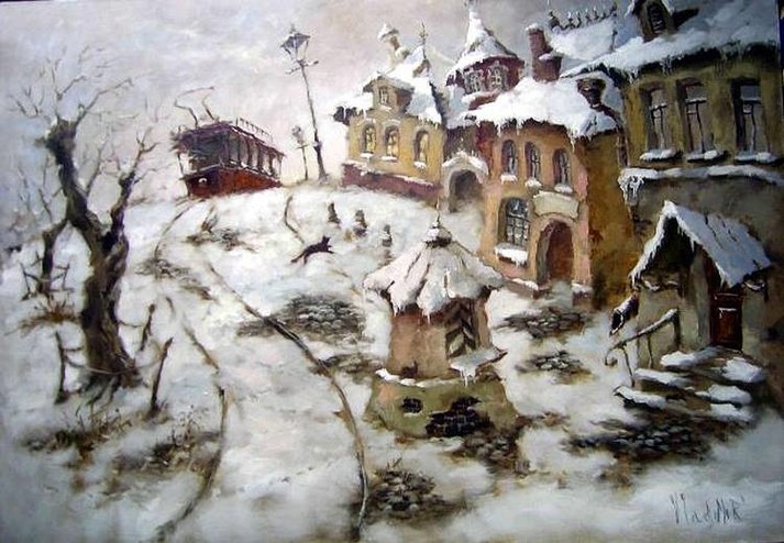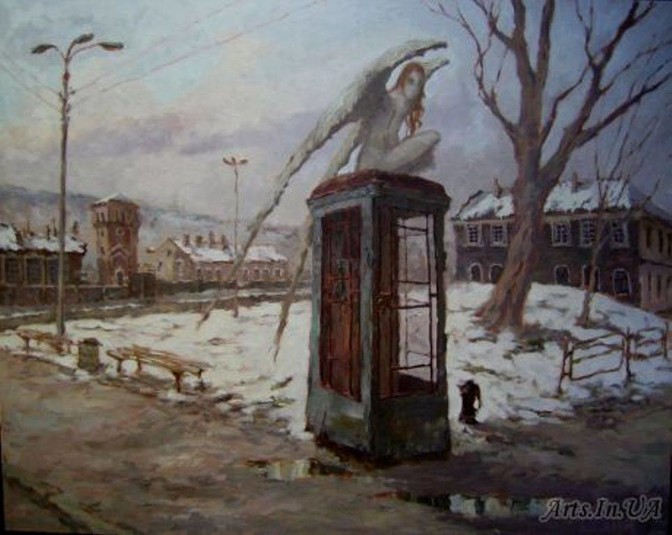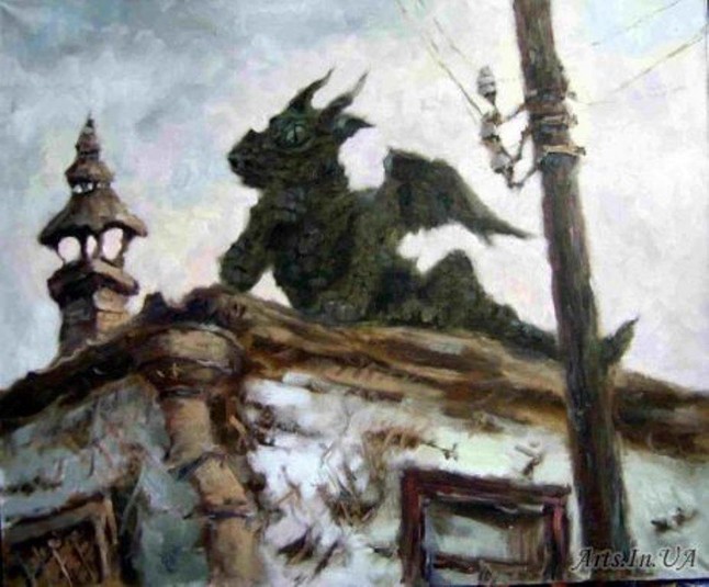 На Facebook-спільноті «Клуб корінного киянина» розмістили роботи художника Володимира Чиркова, на яких зображений Київ, але з певним химерним баченням столиці України митцем.