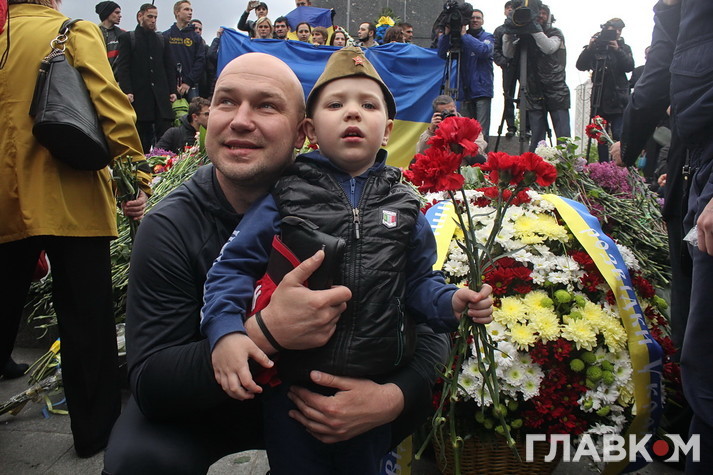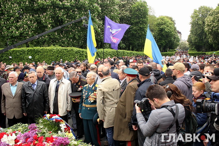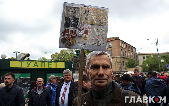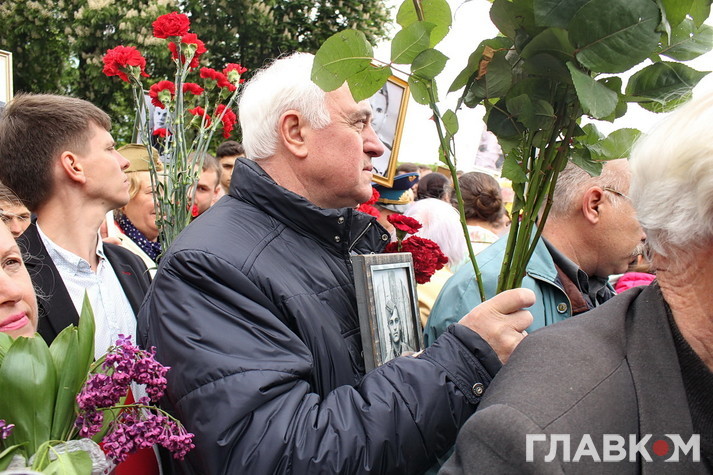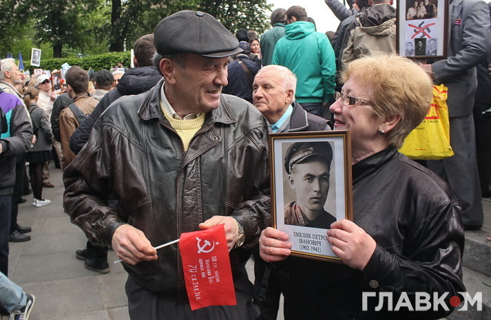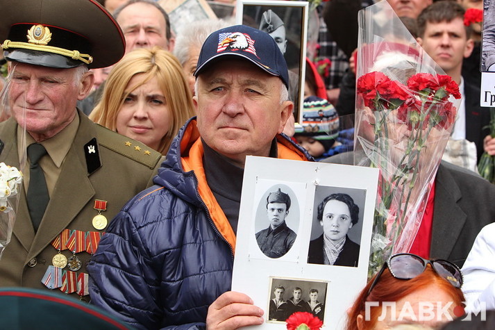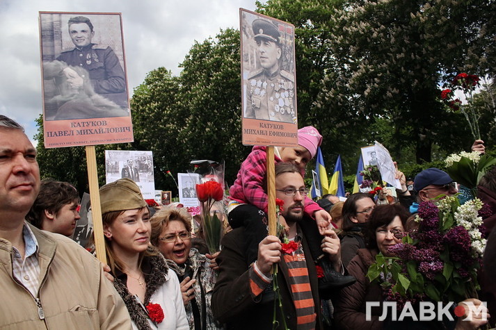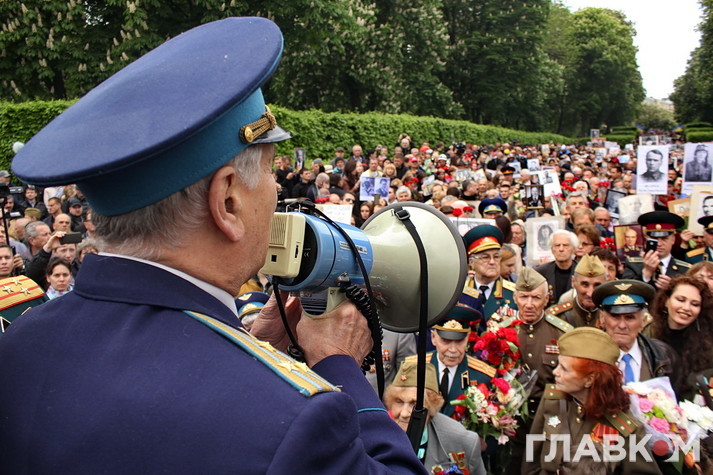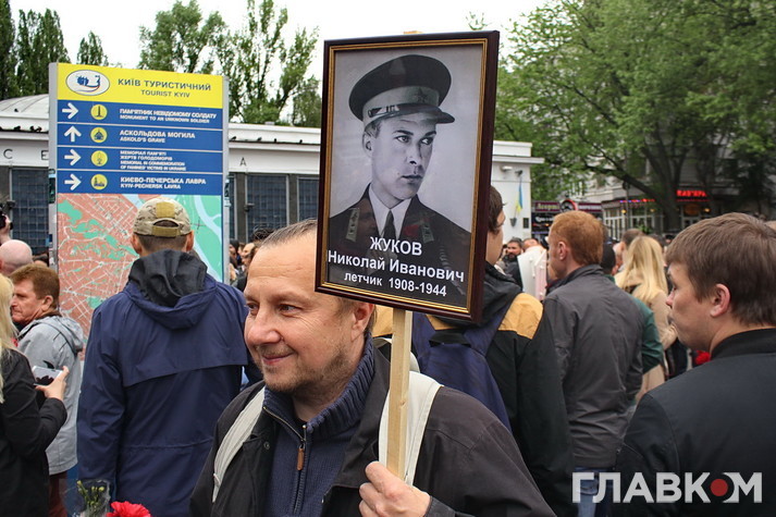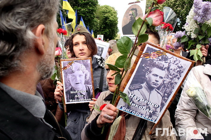 День перемоги цього року в Києві відбувся під знаком акції «Ніхто не забутий, ніщо не забуто», яка була зроблена за відомою російською «франшизою» «Безсмертний полк». У Росії це хода з портретами родичів, які начебто брали участь у Другій світовій війні. Вона розпочиналася як громадська ініціатива, але впродовж останніх кількох років набула пропагандистського змісту і підтримується на державному рівні. Аналогічні ходи в цей день з різним успіхом пройшли і в інших областях України. В столиці, за словами організатора Олени Бережної, акція проходила «за ініціативою Київської міської організації ветеранів України, при підтримці Інституту правової політики та соціального захисту і інших громадських організацій».