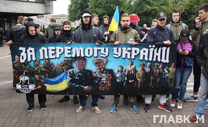 Перемовини пройшли успішно, і тепер головною задачею було не допустити зіткнень. В принципі, правоохоронцям це вдалося, особливо якщо порівнювати з тим, що відбувалось в Дніпрі. Щоправда, були свої нюанси: як тільки колона рушила, з вікна офісу ОУН на голови «безсмертним» та поліцейським полетіли яйця, картопля та шашка, яка додала чорного диму в ходу колони. Біля готелю «Салют» в той час кілька хлопців з українським прапором з організації «С14», які були щільно оточені поліцією, вигукували гасла «Слава Україні», «Комуняку на гілляку», у відповідь «ходоки» запустили кричалку «Фашизм не пройдет». Коли хода дійшла до парку Слави і люди стали покладати квіти до Вічного вогню, відбулося кілька сварок і сутичок – одна з них була спровокована, коли у патріотів намагались відібрати червоно-чорний прапор, сторони почали кидати один в одного гвоздики, але досить швидко все завершилось. Великі суперечки викликала і наявність забороненої символіки – так священнослужитель московської церкви в Україні (УПЦ МП) кріпив «георгіївські стрічки» на портрети загиблих учасників Другої світової війни, в натовпі були помічені портрети Сталіна і Жукова. З фотографією останнього вже кілька років на подібні заходи ходять сестри-близнюки. «Розумієте, що ви злодія славите?», – вигукували активісти. «Слава Радянській Армії!» – чули у відповідь. М’яко кажучи, невдоволення та черговий сплеск агресії викликало намагання розгорнути червоний прапор перемоги.