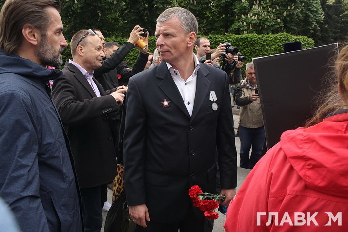 Тим часом до Вічного вогню в парку Слави з квітами підійшов одіозний депутат Вадим Новинський з «Опозиційного блоку». Відомий шанувальник та спонсор Московського патріархату в Україні був у компанії митрополитів Онуфрія та Антонія. Сама акція «Безсмертного полку», до речі, широко піарилась та висвітлювалась зусиллями телеканалу «Інтер», близького до однопартійців Новинського. Цікаво, що масового їхнього десанту в парку Слави помітно не було. Засвітились також представники «медвечуківського» «Українського вибору», але прогнозовано без свого утаємниченого лідера, що відомий кумівством з самим Путіним. Таку відсутність політиків можна було пояснити і тим, що «Азов» напередодні забарикадував кількох з них прямо в домівках – особливо дісталось Наталії Вітренко, під’їзд і двері квартири якої розписали фарбою.