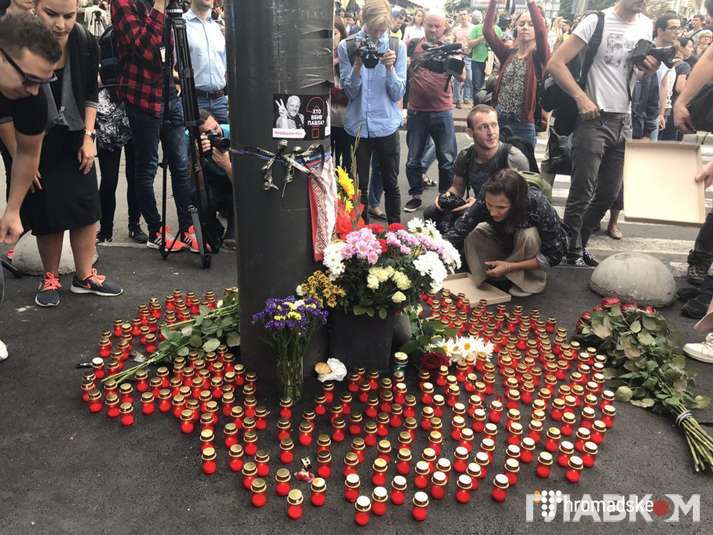 У Києві вранці у четвер, 20 липня, на місці вбивства журналіста Павла Шеремета відбулася акція пам'яті, присвячена річниці трагедії.