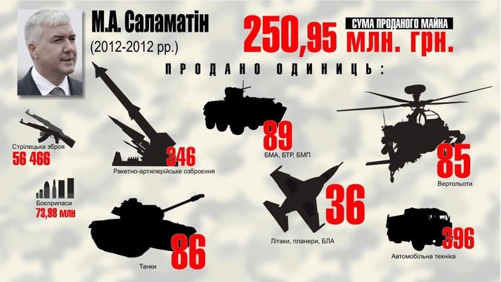 Прес-секретар генерального прокурора Юрія Луценка Лариса Сарган опублікувала дані щодо продажу рухомого та нерухомого майна військового призначення