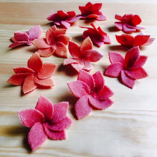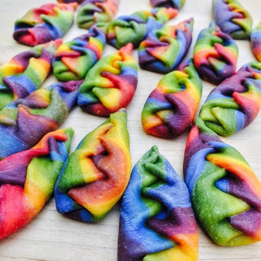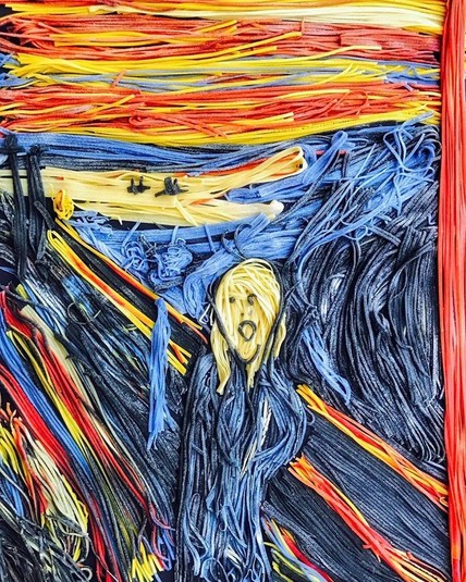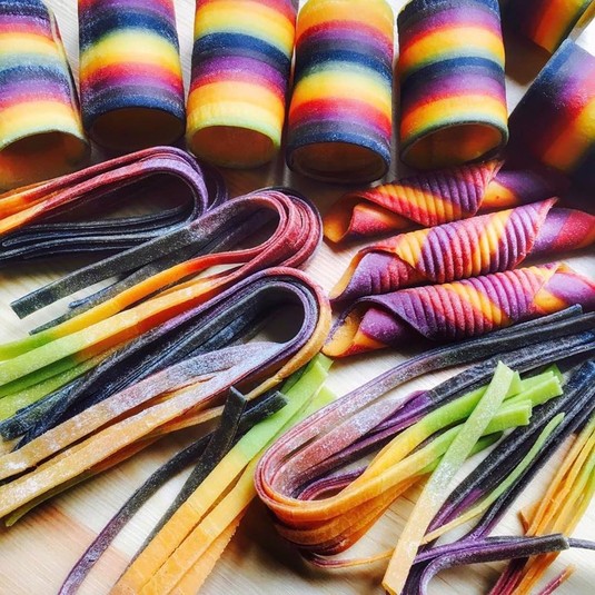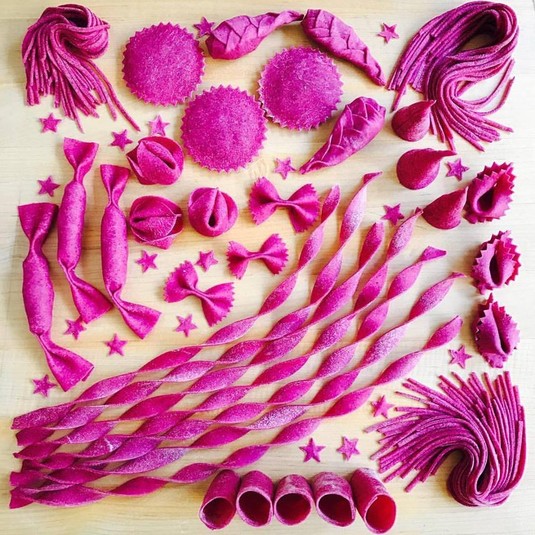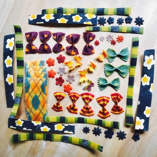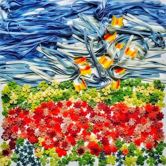 Створюючи макаронне мистецтво за допомогою яскравих, веселкових барв, для отримання яких вона використовує виключно натуральні інгредієнти, життєрадісна художниця вигадує всілякі варіації форм і забарвлень пасти, з якої інколи навіть відтворює картини відомих художників.