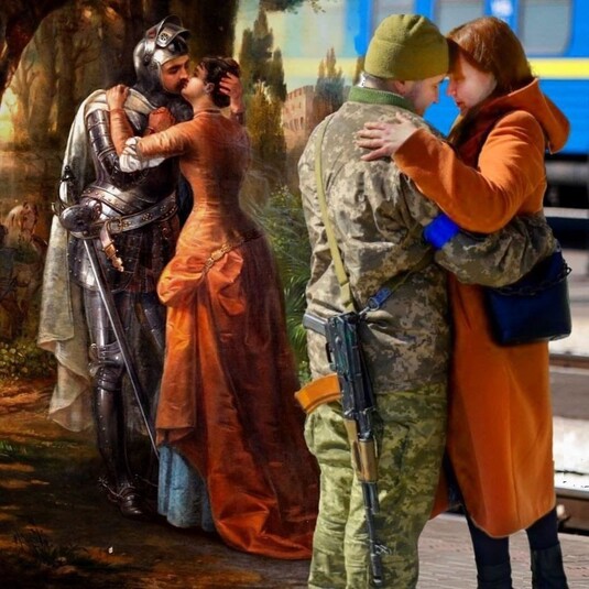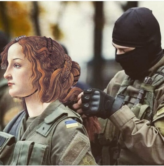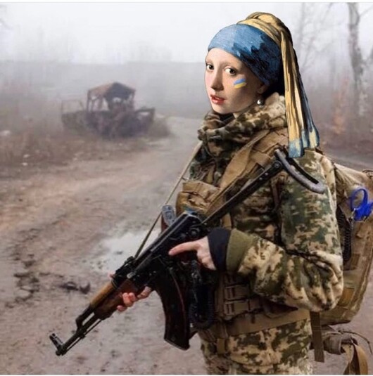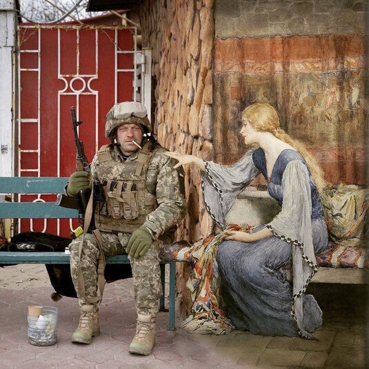 Мисткиня робить цифрові колажі – поєднує героїв і сюжети відомих картин та українські фотографії нинішнього воєнного часу.