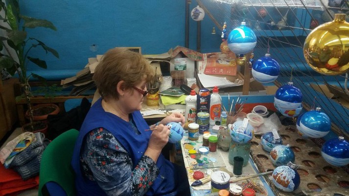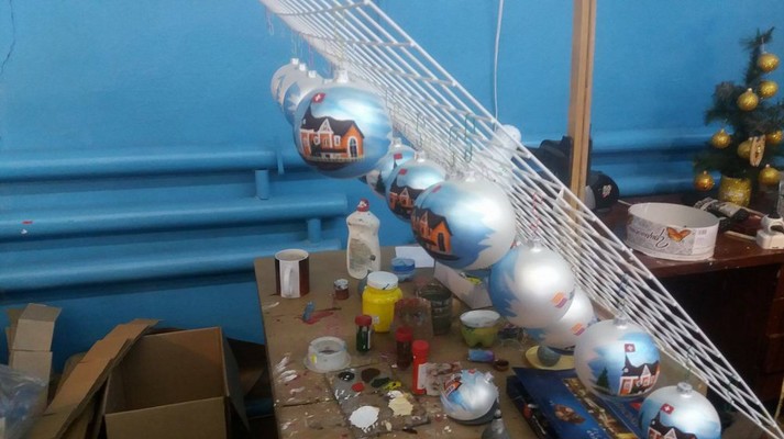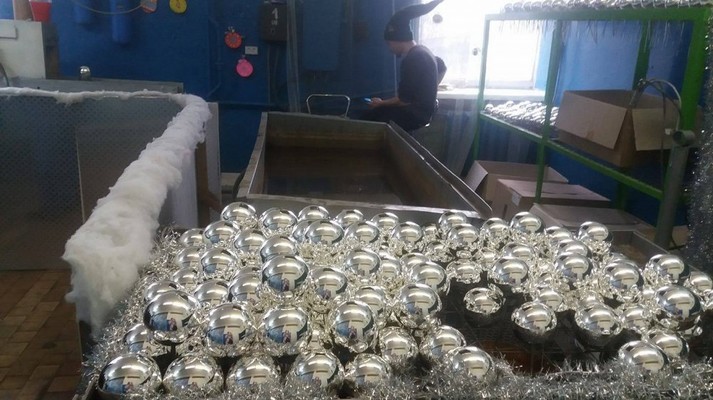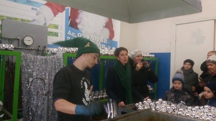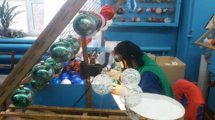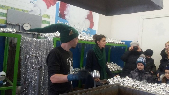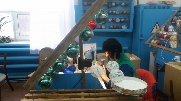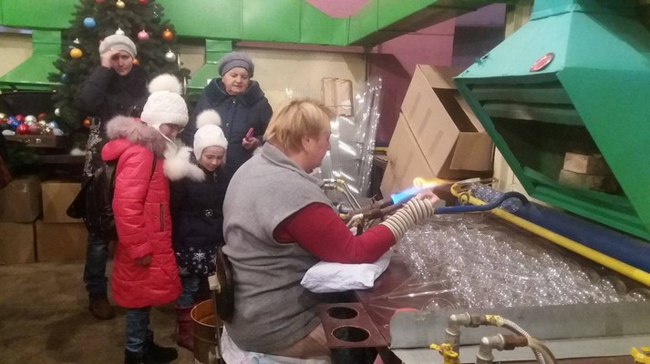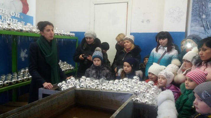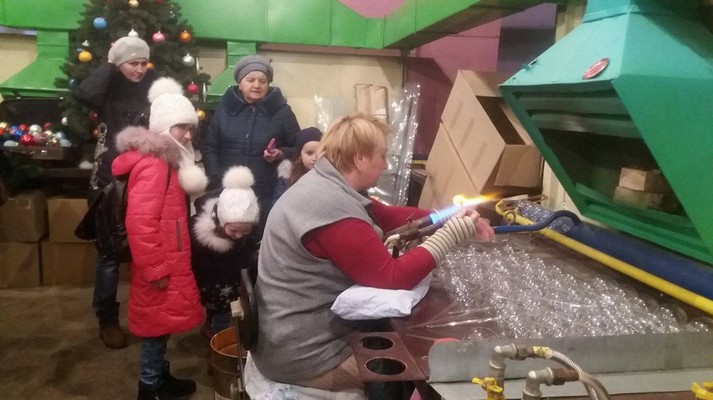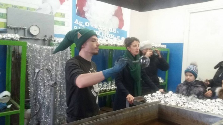 Колись фабрика була створена для виробництва пробірок і медичного обладнання, продовжує екскурсовод. - Потім перекваліфікувалася у фабрику ялинкових прикрас. Тут виробляли українські гірлянди та закручений дощик. Зараз лише іграшки і то під замовлення