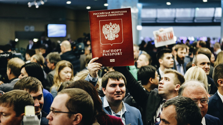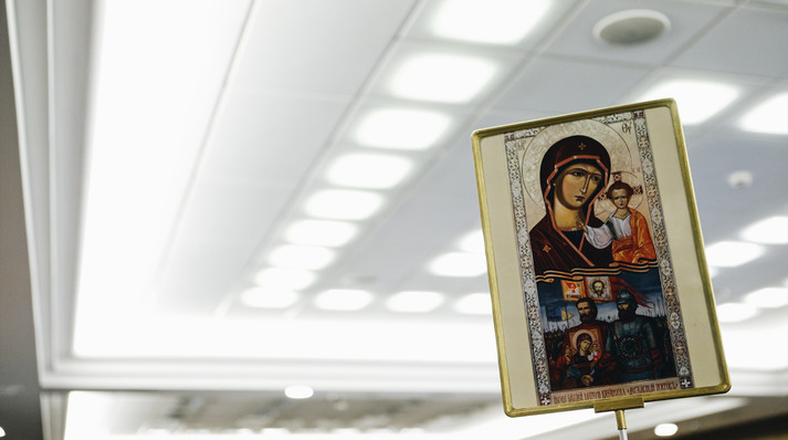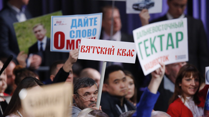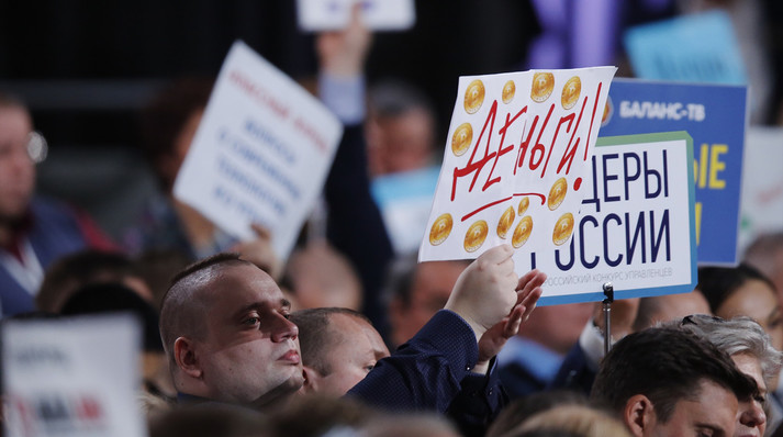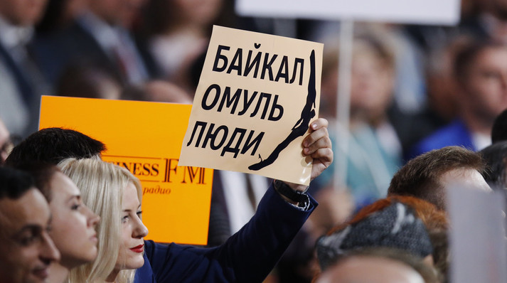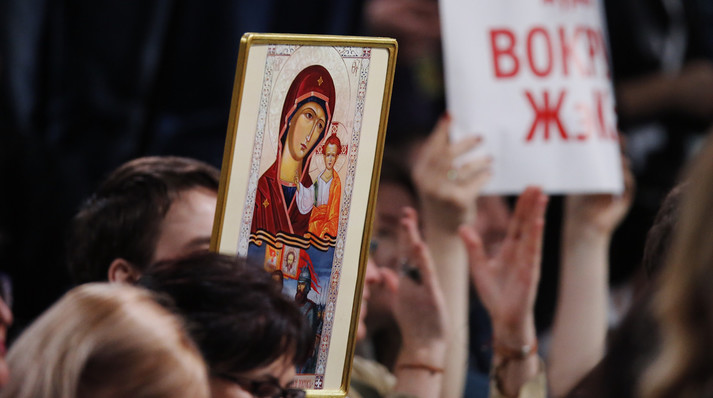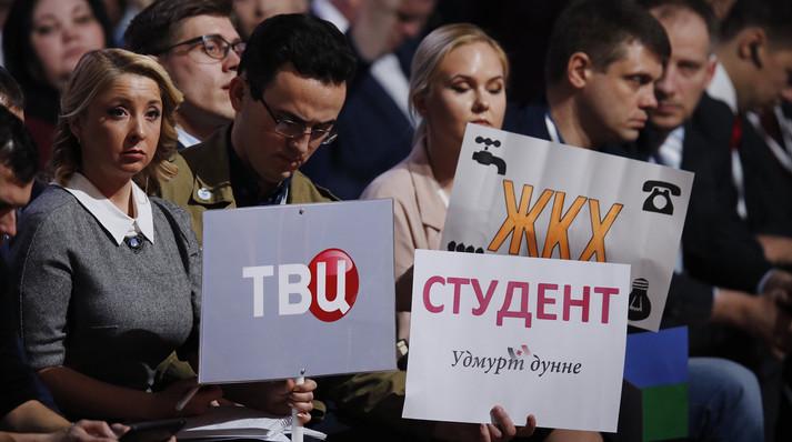 Ікона, матрьошка та інші дивні плакати з прес-конференції Путіна. Фотогалерея