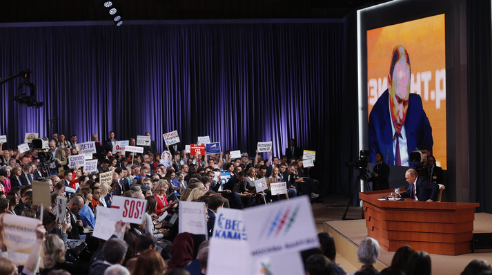 В Москві вчора проходила щорічна велика прес-конференція президента Росії Володимира Путіна. За 3 години 41 хвилини йому задали декілька десятків питань.