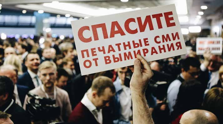 Російські журналісти принесли з саморобні плакати з дуже дивними написами на них