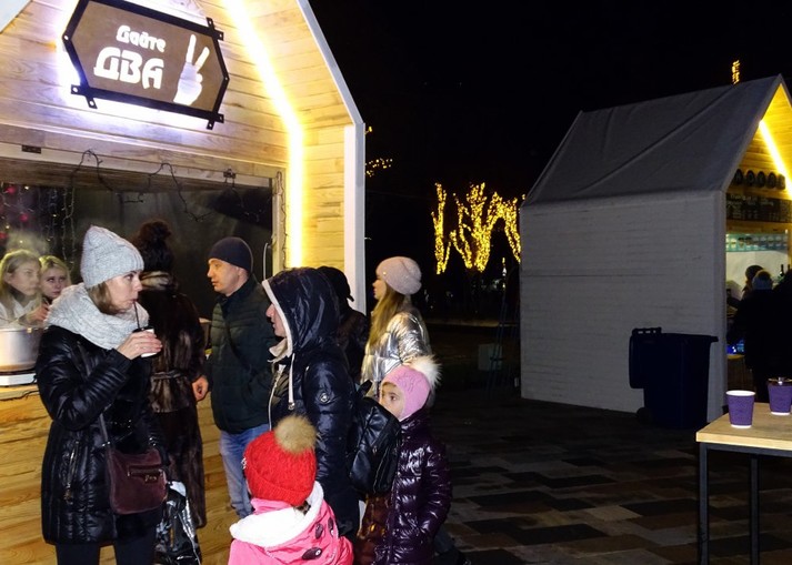 Для зігрівання містянам пропонують глінтвейни з білого чи червоного вина. За півлітра віддають 55 гривень. Чай коштує 50 гривень за 0,5, кава — від 13 до 35 грн.
