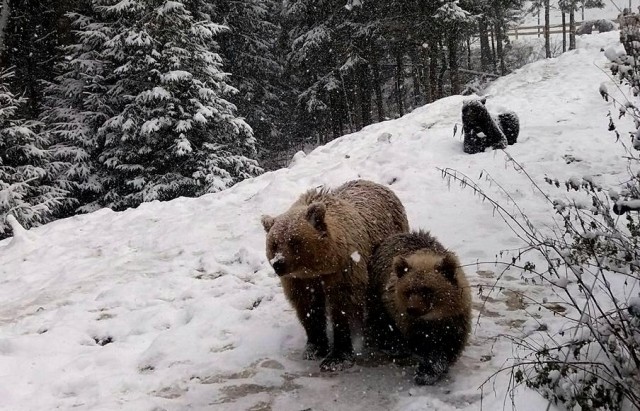 Так само засніжило на Міжгірщині, зокрема в національному парку «Синевир», де розташований притулок для реабілітації бурих ведмедів. Ці кадри розмістила у мережі працівниця парку Марина Шпілька.