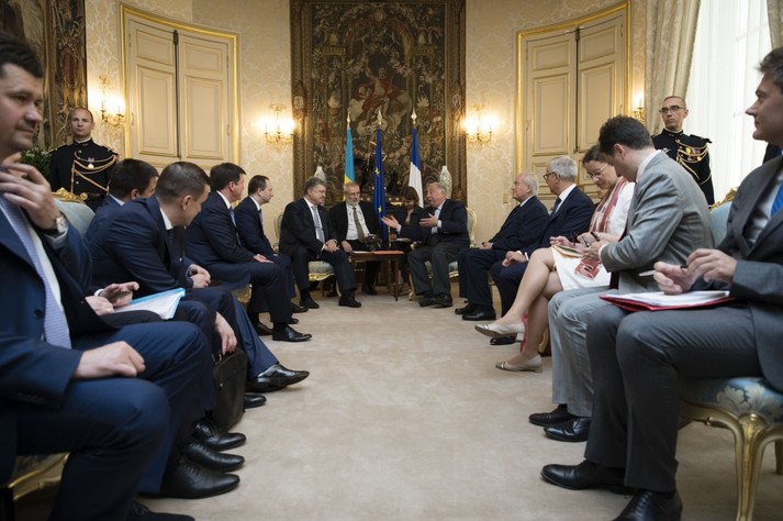 У рамках візиту до Франції президент Петро Порошенко провів зустріч президентом цієї країни Еммануелем Макроном та з Головою Сенату Франції Жераром Ларше.