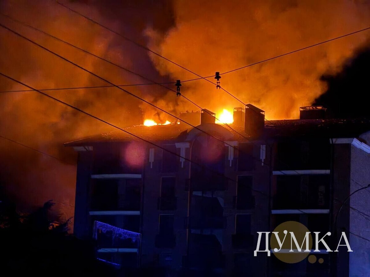 Очільний Харківської ОДА Олег Синєгубов повідомив, що ворог завдав вісім ударів дронами по Шевченківському району Харкова. Внаслідок влучання БпЛА загорівся дах незаселеного багатоповерхового будинку.