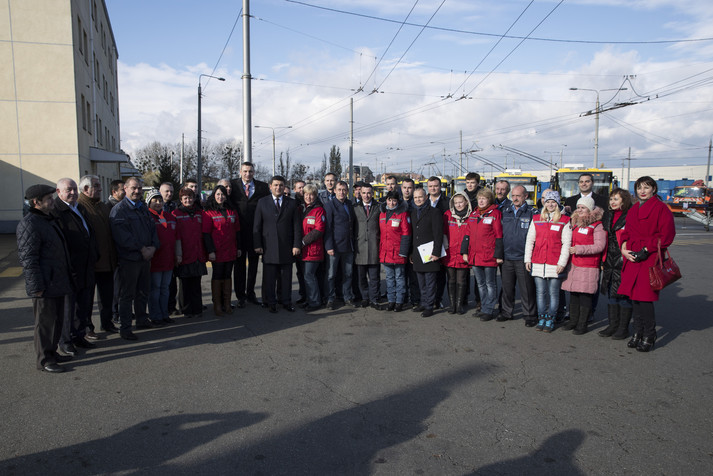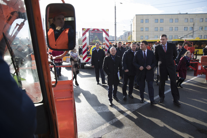 Мер Києва Віталій Кличко разом з прем'єр-міністром Володимиром Гройсманом відвідали тролейбусне депо №1 і оглянули техніку «Київавтодору» та тролейбуси «Київпастрансу