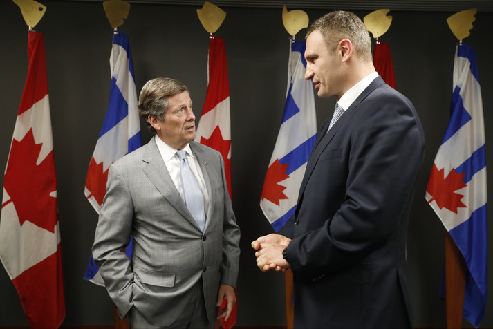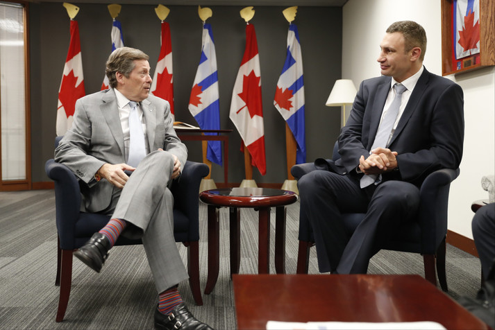 Мер Києва Віталій Кличко домовився з мером Торонто Джоном Торі про більш ефективну і практичну співпрацю між містами-побратимами Києвом і Торонто