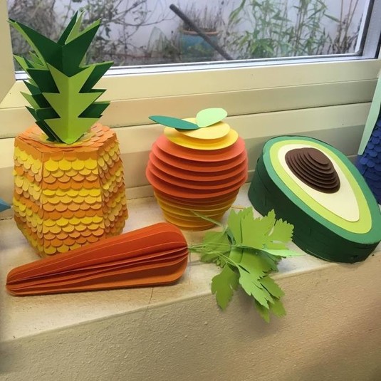 Для створення своїх робіт Ліза використовує листи різнокольорового паперу