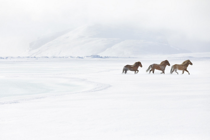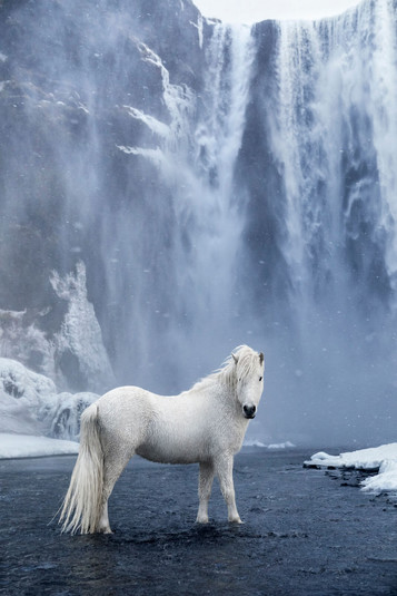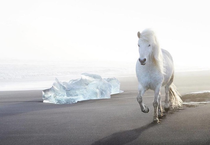 Серія фотографій коней, знятих на казковому тлі ісландських водоспадів, пляжів з чорним піском і снігових тундр, де на передній план виступає спорідненість благородних і витривалих тварин з суворим ландшафтом.
