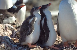 «Друзі, пригадуєте перших субантарктичних пінгвінят цього сезону, що народилися на нашому острові на початку грудня? Вони були такі маленькі, незграбні і сіренькі (перші два фото в галереї – ред.). А тепер погляньте, які вони вже пузанчики! Зараз їм майже місяць. Сірий пушок став біло-сірим, а зовсім скоро малюки почнуть линяти та змінювати його на пір'я, як у дорослих», – йдеться в повідомлені.