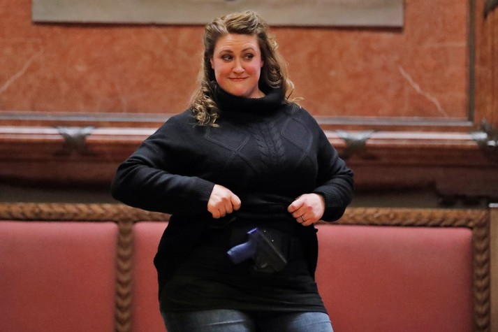 На сцені продемонстрували спеціальний одяг і аксесуари для прихованого носіння вогнепальної зброї.