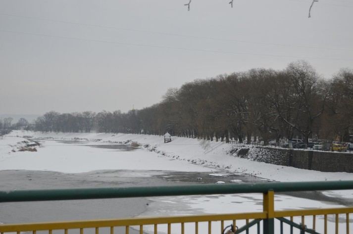 На стовпчиках термометрів переважають мінусові температури, сніг не тане, а падає з більшою силою. Міст через річку Уж, яка протікає центром міста, вкрився снігом, перила стали крижаними.
