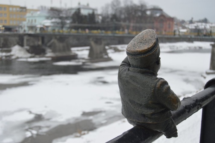 Крижаний міст та мініатюрні вуличні фігурки: затишні зимові фото Ужгорода