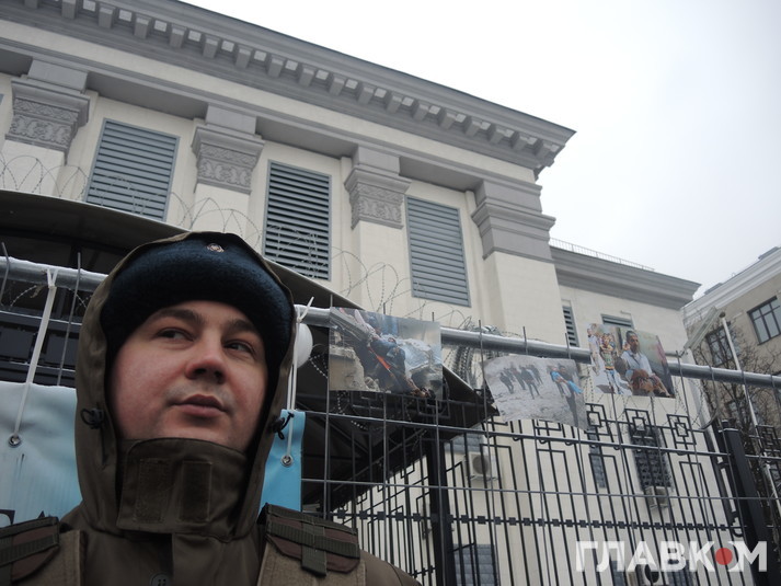 Під самою будівлею посольства зібралось близько сотні учасників акції. Зокрема, в акції взяв учать кримський політв'язень Геннадій Афанасьєв.