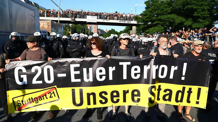 Напередодні старту саміту Великої двадцятки в Гамбурзі проходить акція протесту Welcome to Hell («Ласкаво просимо в пекло»), передає Deutsche Welle. Під час демонстрації поліція застосувала водомети і перцевий газ проти агресивно налаштованої частини мітингувальників, які кидали пляшки, димові шашки та інші предмети.