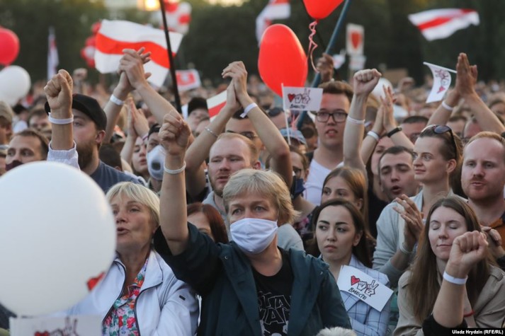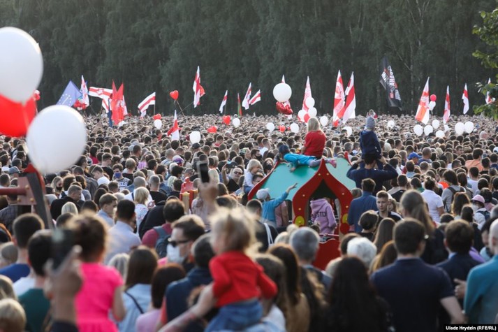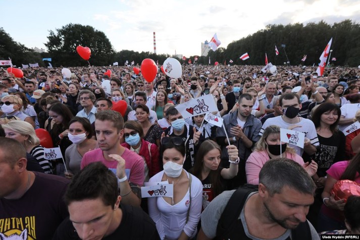 Близько 63 тисяч людей прийшли в Мінську на мітинг опозиційної кандидатки на посаду президента Білорусі Світлани Тихановської. За даними білоруських ЗМІ, цей мітинг став наймасовішим за останні роки.