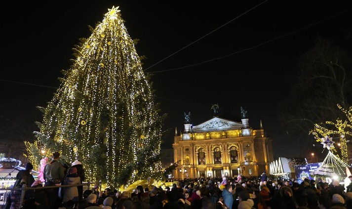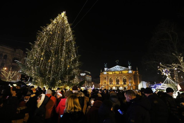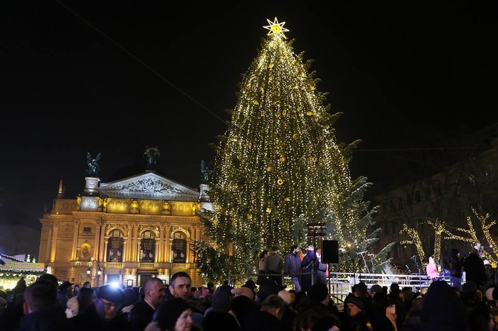 У Львові відкрили консервативну центральну міську ялинку. Фотогалерея