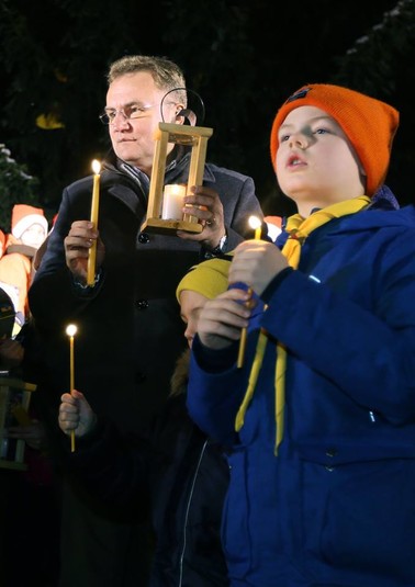 Відкриття центральної новорічної ялинки на площі перед Оперним театром у Львові, що відбулося 17 цього річ викликало небувалий ажіотаж. Найменші діточки із капели «Дударик» виконали «Щедрик» у новому звучанні. На сцені поруч ялинки Львівський осередок Національної скаутської організації «Пласт» передав мешканцям міста Вифлеємський вогонь миру, який отримав міський голова Андрій Садовий з дружиною Катериною та синами. Скаути відвідають також сиротинці, інтернати та церкви міста, куди принесуть Вифлеємський вогонь миру.