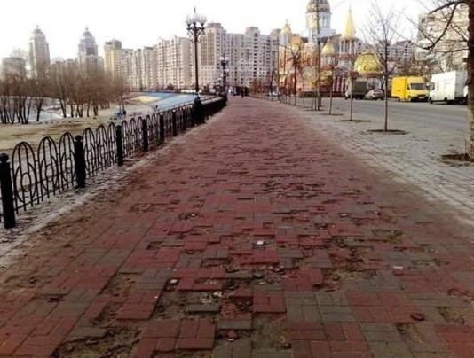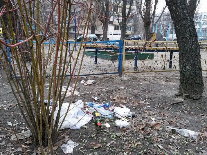 Київ потопає у смітті. Столичні жителі у соціальних мережах діляться фотографіями брудних вулиць рідного міста. Особливо помітною занедбаність Києва стала сьогодні, коли зійшов сніг, який частково ховав під собою увесь бруд.