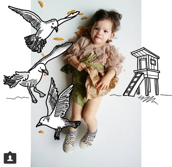 Користувач Instagram Ту Фам перетворює фотографії доньки на милі ілюстрації.