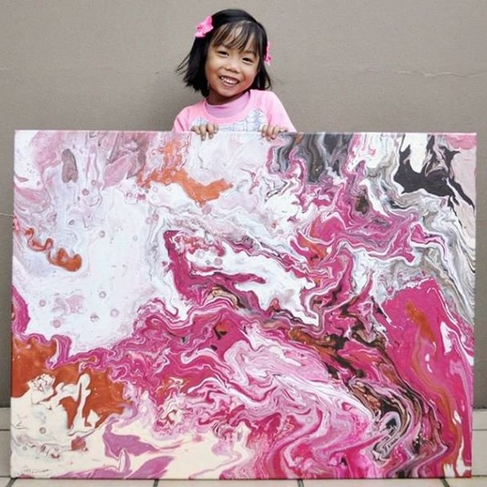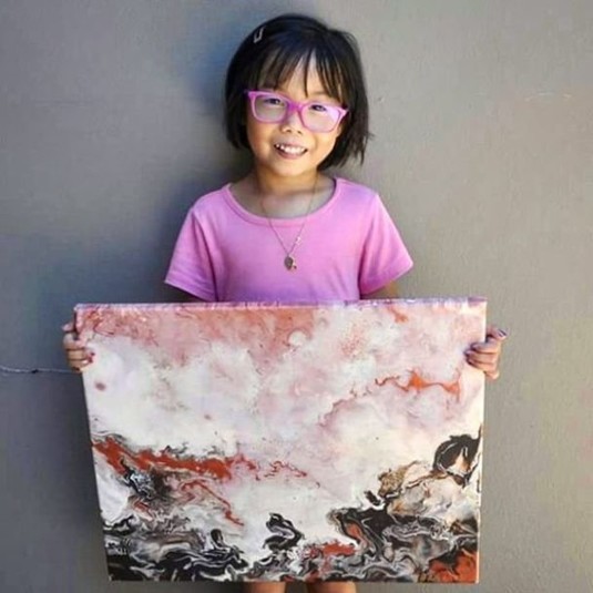 У Сіднеї 5-річна Кессі Джі створює неймовірні вихрові картини, які продає на своєму веб-сайті та інтернет-магазині Etsy. Отримані гроші віддає на благодійність