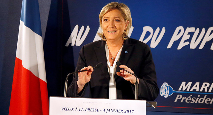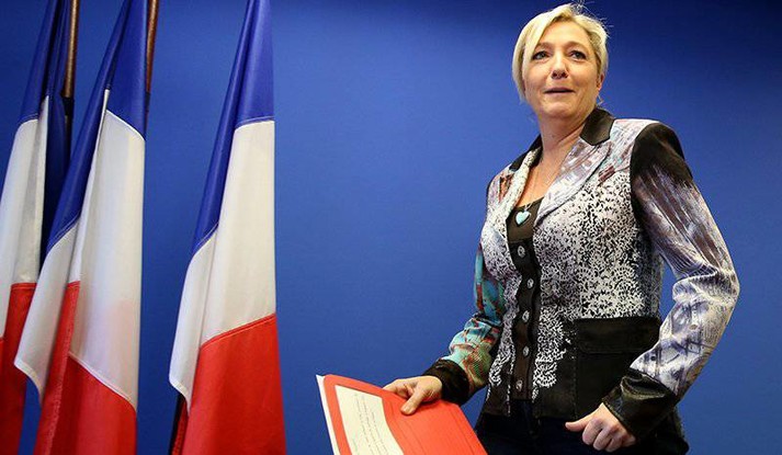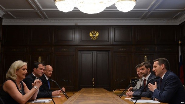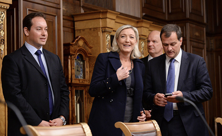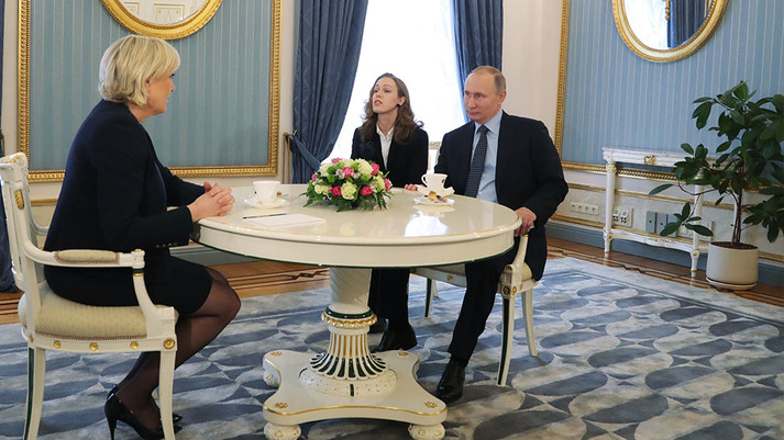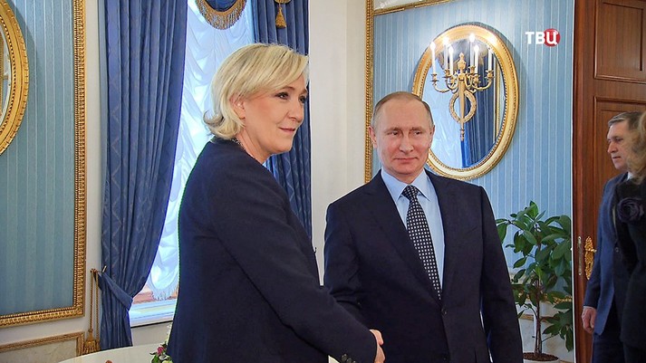 Ле Пен відкрито симпатизує російському президентові Володимиру Путіну та зустрічалась із ним у Москві незадовго до виборів. Раніше її партія отримала кредит на кілька мільйонів євро від одного з російських банків