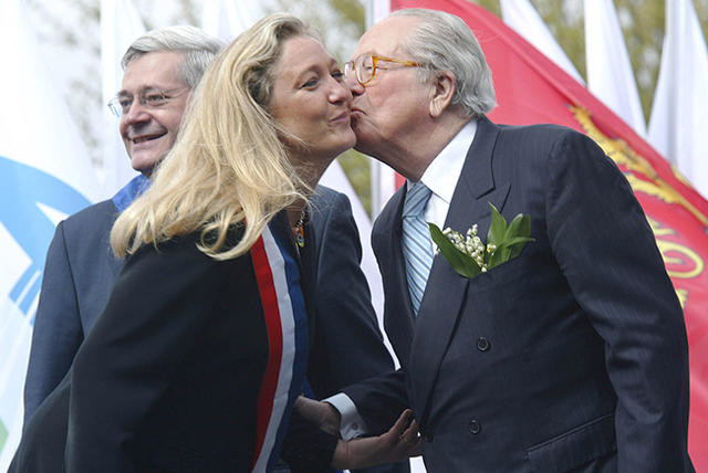 Ле Пен – молодша донька засновника партії Жана-Марі Ле Пена. Їй 48 років, за професією вона адвокат, двічі розлучена й мати трьох дітей. Ле Пен очолила «Національний фронт» у 2011 році та проголосила курс на його «дедемонізацію» – публічну відмову від расистських та антисемітських поглядів батька. Їй справді вдалось залучити частину виборців з мейнстриму. Однак по суті партія залишилась ультраправою.