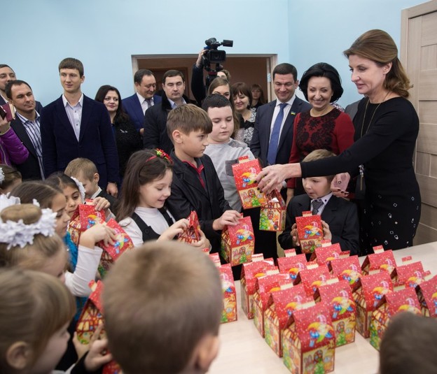 Дружина глави держави також відвідала новорічне свято для учнів інклюзивних класів регіону в Запорізькому академічному обласному українському музично-драматичному театрі імені Володимира Магара.