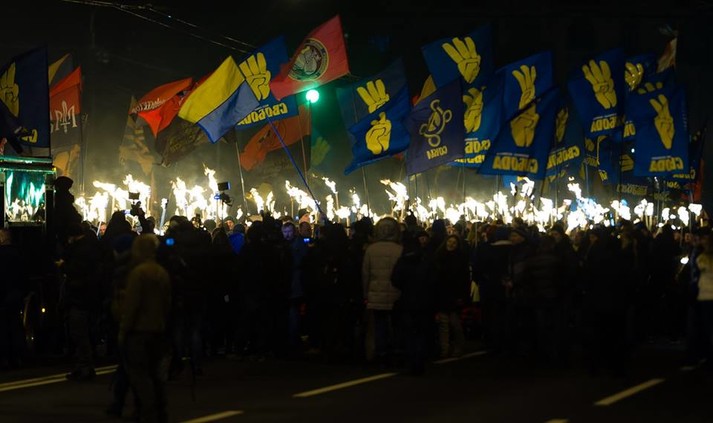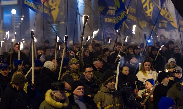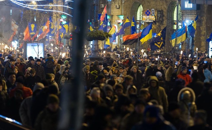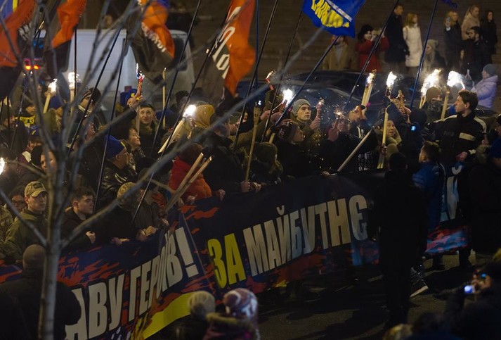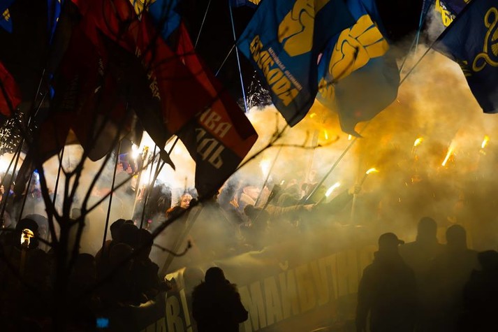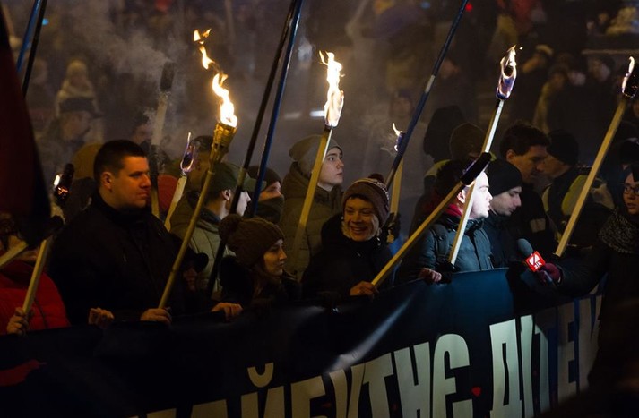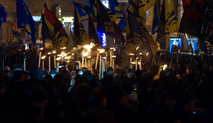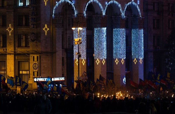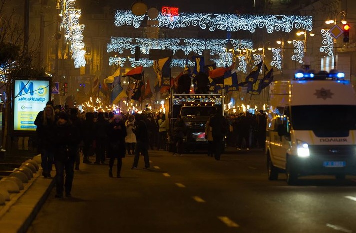 У Києві націоналісти вийшли на марш з нагоди відзначення 109-ї річниці з дня народження одного з лідерів Організації українських націоналістів Степана Бандери. Організаторами акції стали Правий сектор, Свобода та Національний корпус.
