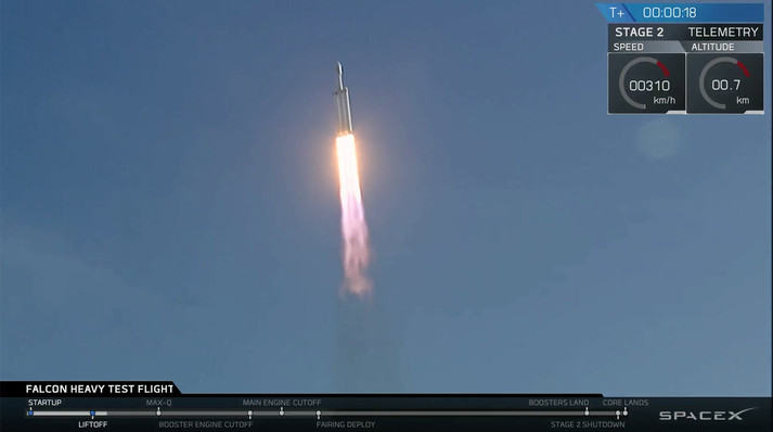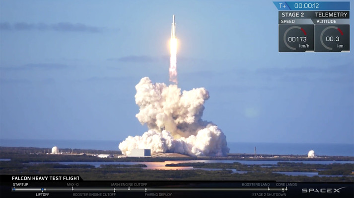 Проте, згодом SpaceX все провела перший вогневий тест збірної важкої ракети-носія Falcon Heavy.