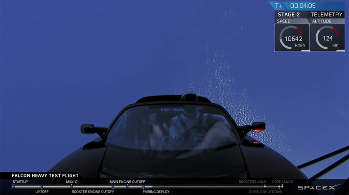 На еліптичну орбіту, яка простягається від Сонця до Марса, відправили особистий автомобіль глави SpaceX Ілона Маска, червоний Tesla Roadster з манекеном в скафандрі на водійському сидінні.