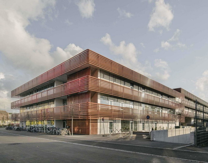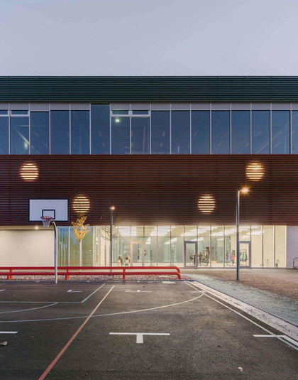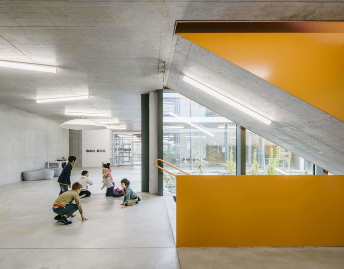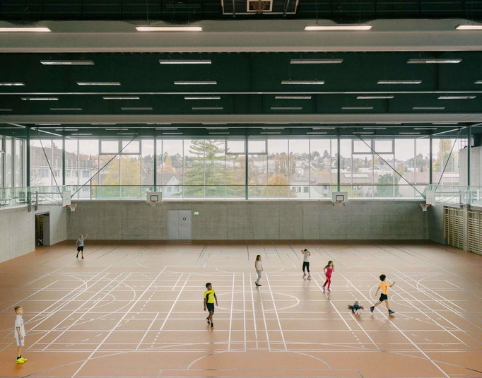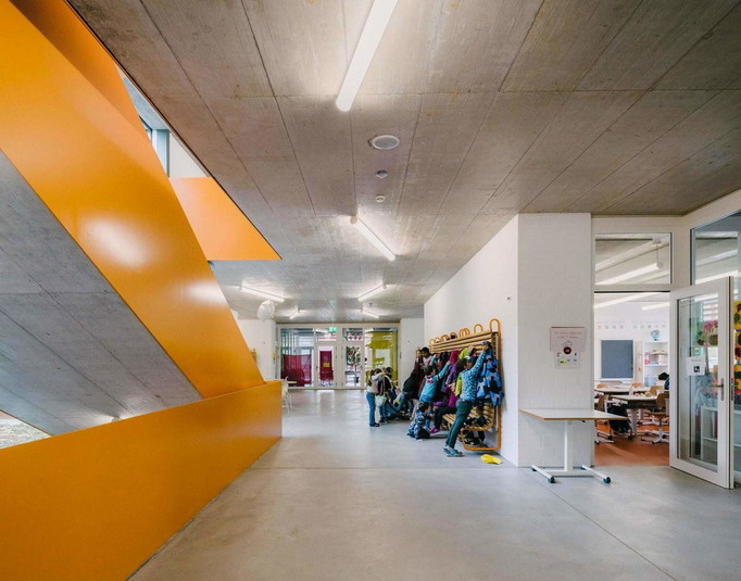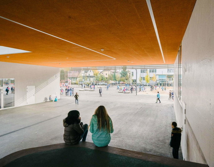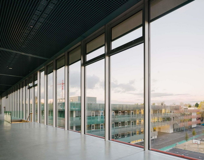 У відповідь на значне зростання населення влада невеликого містечка Альшвіль (Швейцарія), яке майже зливається з Базелем, оголосили конкурс на будівництво школи, яка розрахована на 600 дітей. Виграла конкурс студія BUR Architekten. Вона здійснила проект, який являє собою дві будівлі, з'єднані критим переходом.