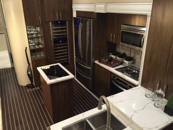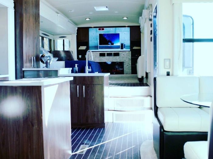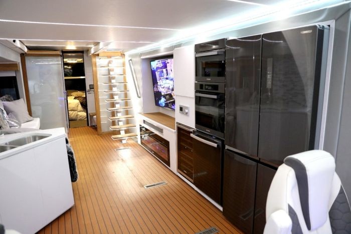 Площа кожного трейлера складає 32,5 кв. м, що можна порівняти з квартирою середнього розміру. Усередині розміщуються кухня, санвузол, спальне місце і навіть гостьова кімната.