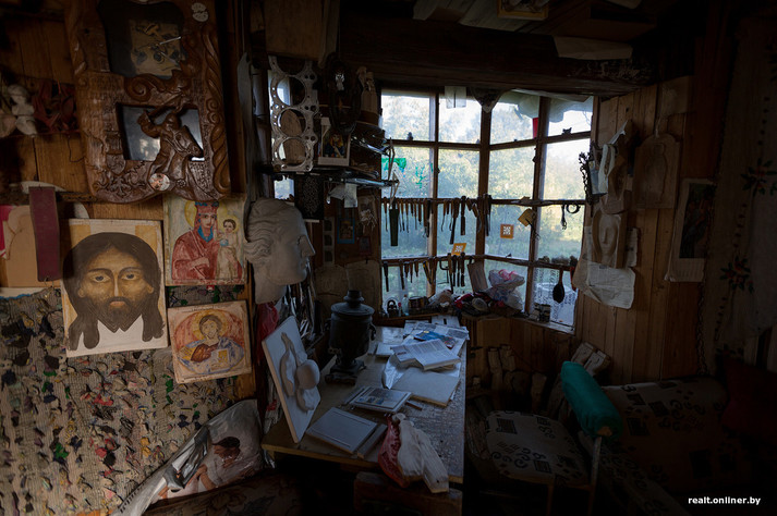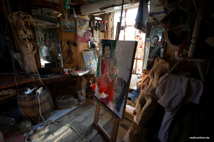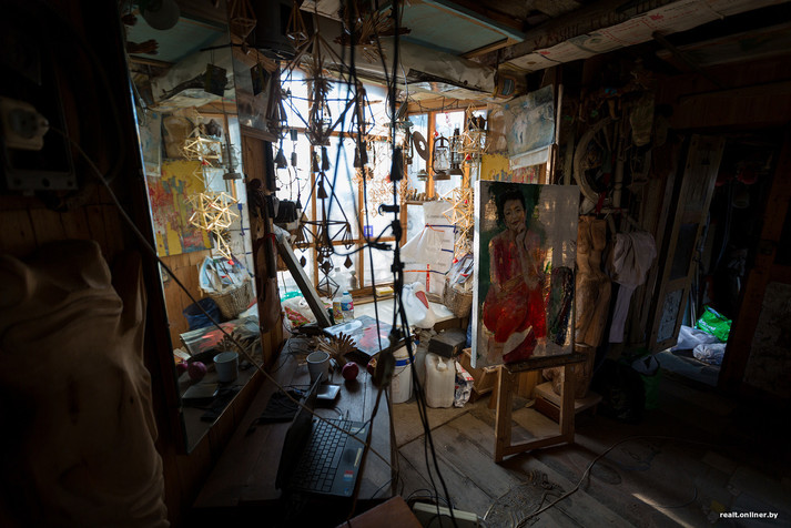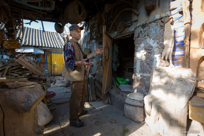 «Хтось запропонував забрати старі вікна - я погодився і вирішив будувати другий поверх. Зробив з бруса каркас, зв'язав його, вікна обклав цеглою, а все інше зашив бляхою. Так будова зросла до триповерхового будиночка з житловими кімнатами і майстерні, де я і працюю», - каже Олег Пракоріна.