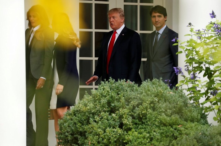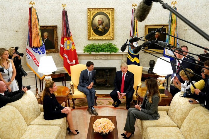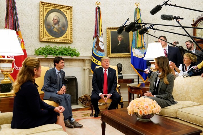 Меланія Трамп прийшла на зустріч з прем'єр-міністром Канади Джастіном Трюдо і його дружиною Софі Грегуар в строгому костюмі.