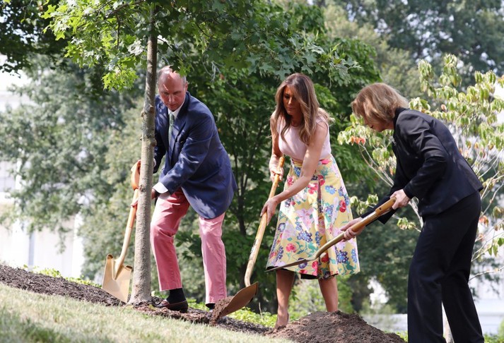Меланія Трамп у відвертому топі посадила дуб біля Білого дому. Фотогалерея