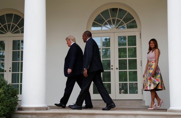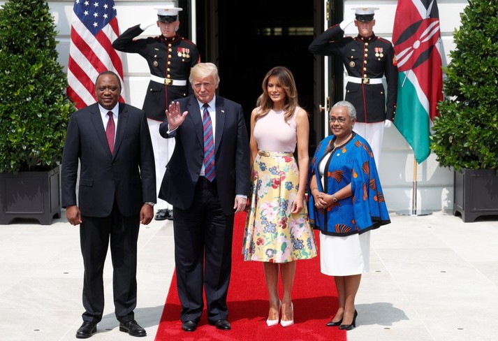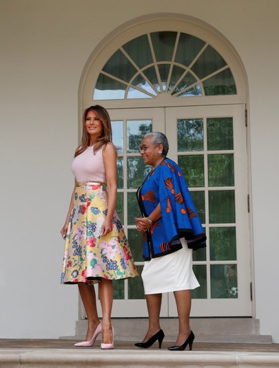У такому вигляді незадовго до цього Меланія Трамп разом з Дональдом Трампом зустрічалися з президентом Кенії і його дружиною.